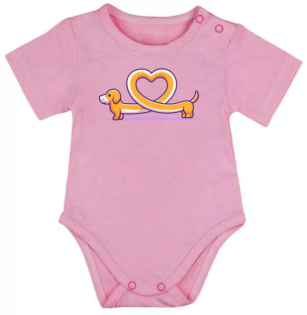 bojčenské telo s krátkym rukávom so srdciou psa ružová