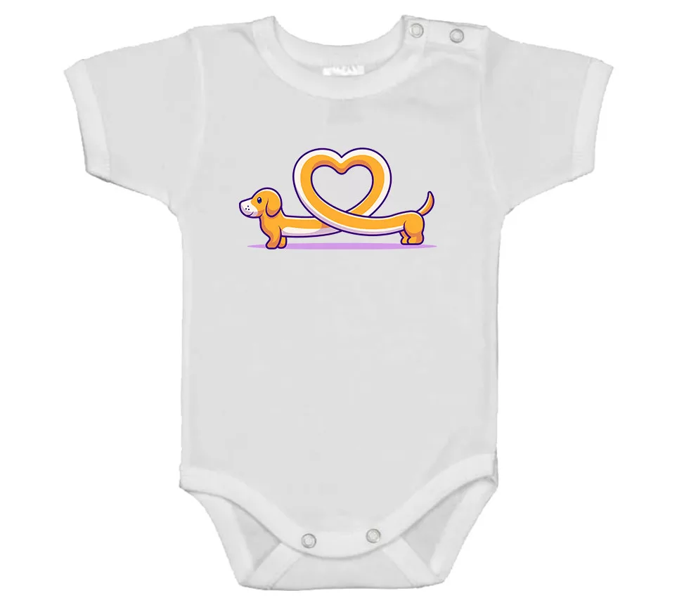bojčenské telo s krátkym rukávom so srdciovým nožíkom psa biely