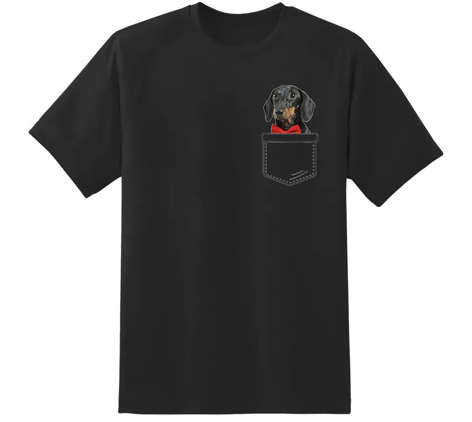 čierny jazvečík ​​vo vrecku čierne tričko