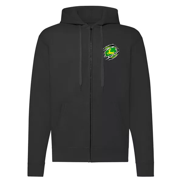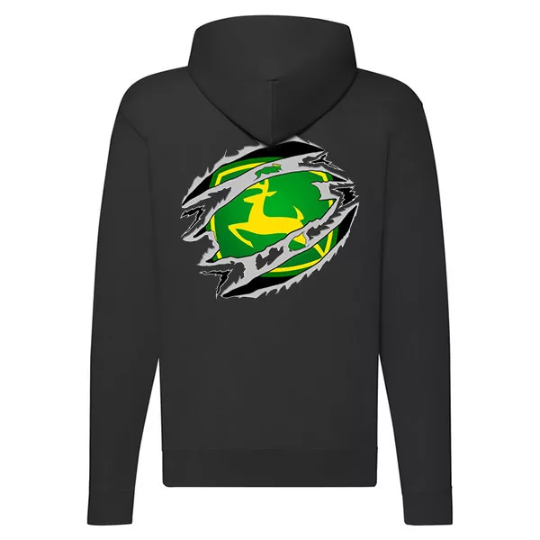 čierny svetr s mikinou so zeleným logom traktor zips