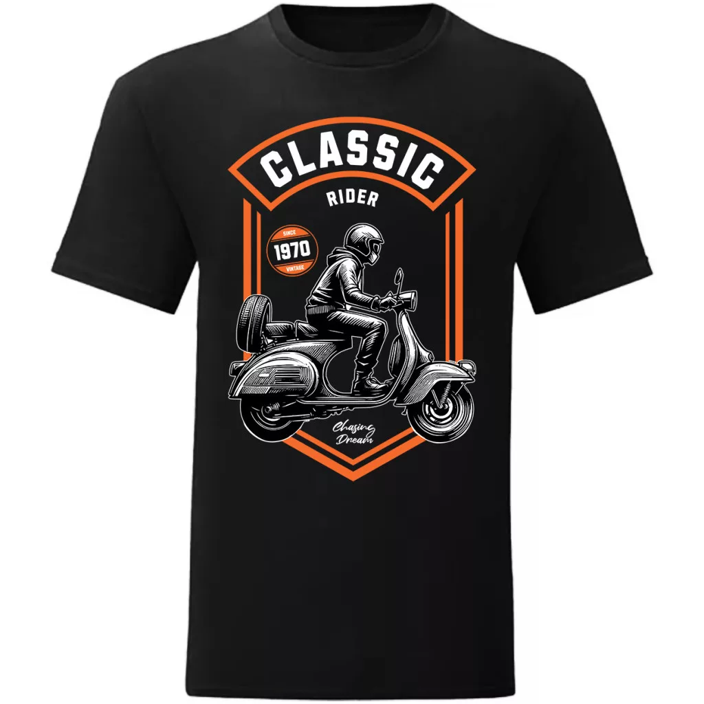 classic rider motorcycle tričko čierne