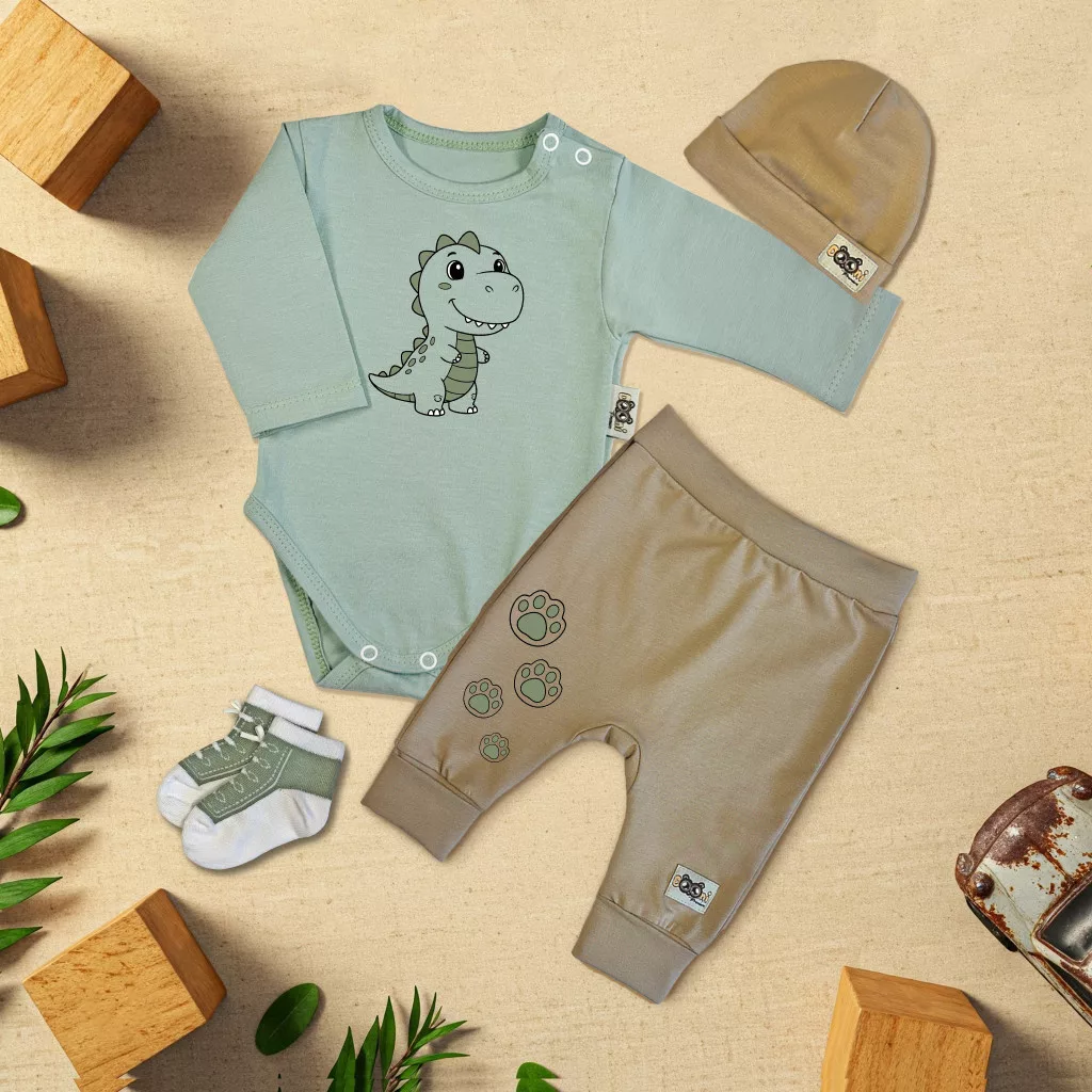 exkluzívna sada detského oblečenia dinosaurus mäta/káva (dlhé rukávy)