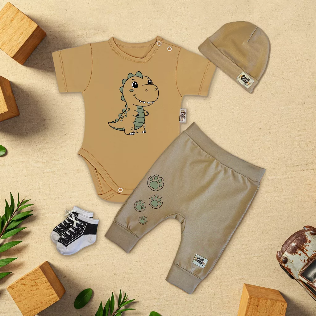 exkluzívna súprava detského oblečenia dinosaurus arašid/káva