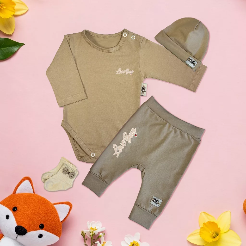 exkluzívna súprava detského oblečenia love bug káva/káva (s dlhým rukávom)