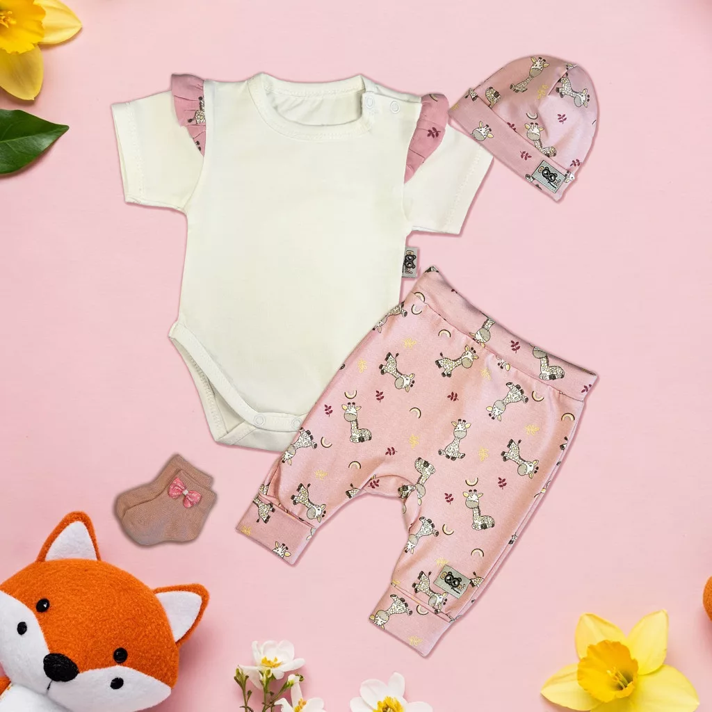 exkluzívna súprava detského oblečenia s bielym volánom/žirafou