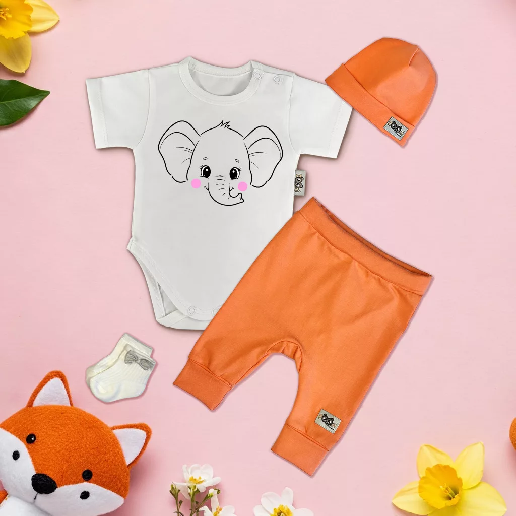 exkluzívna súprava detského oblečenia slonia biela/oranžová