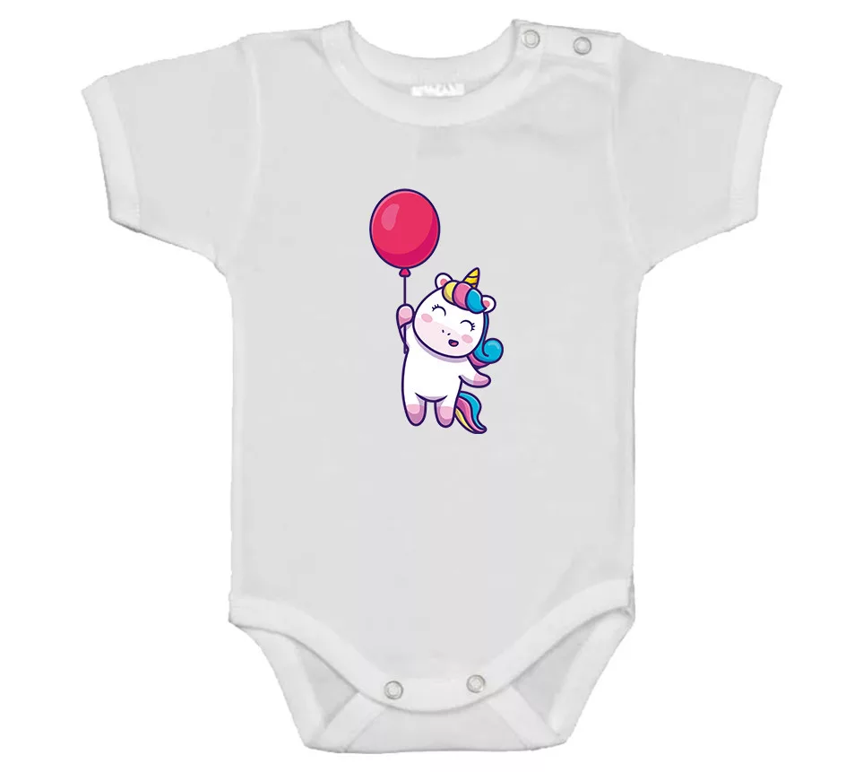 jednorožec s balónovým krátkým rukávom bábätká telo biely