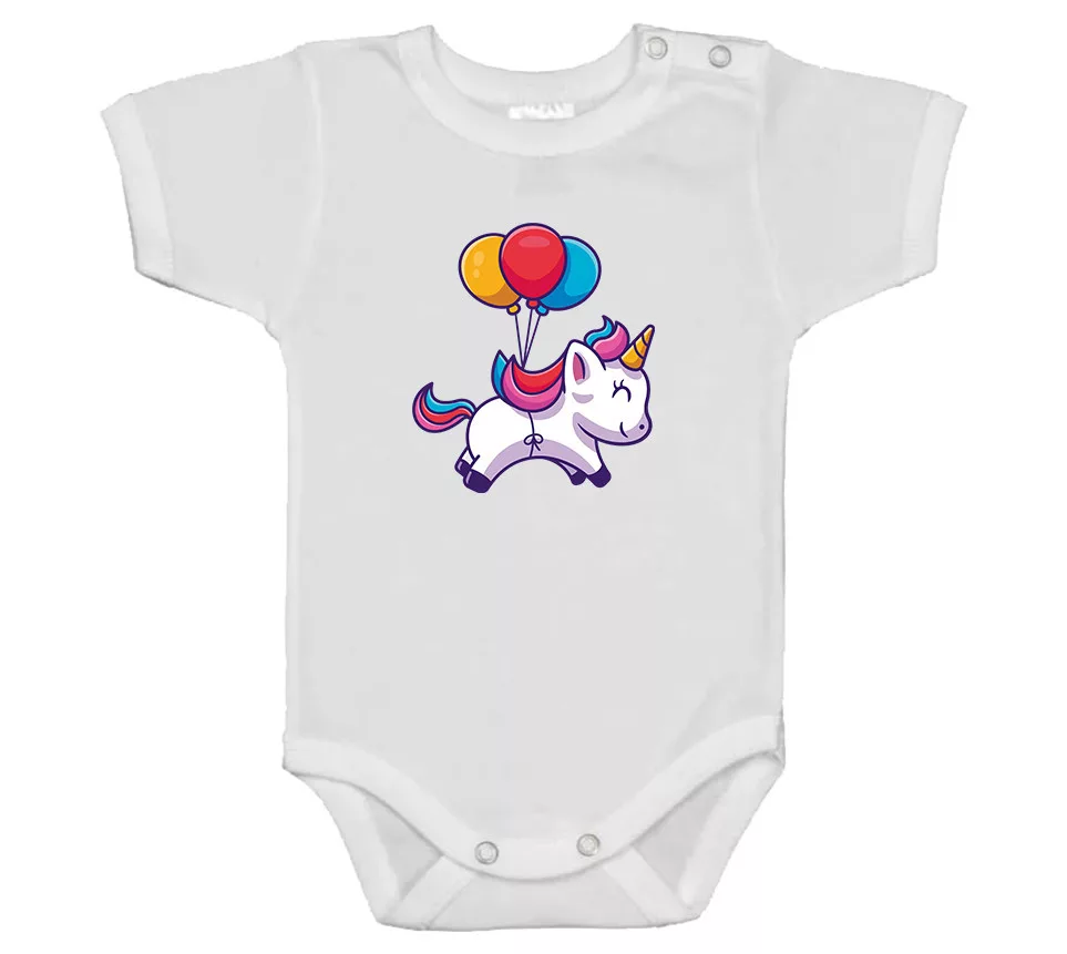 jednorožec s troch balónmi biely biely rukáv detské telo s krátkym rukávom