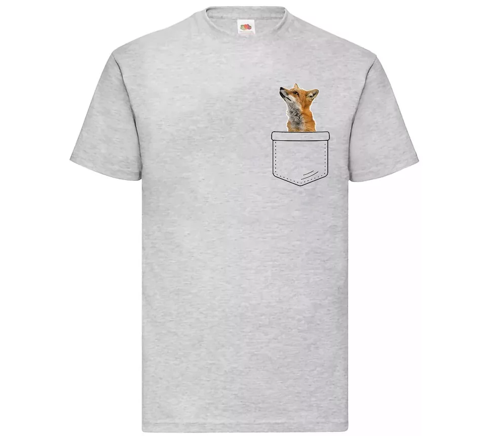 líška vo vrecku šedé tričko