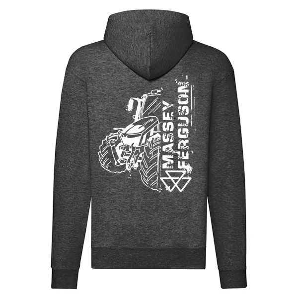 massey ferguson tmavosivý sveter na zips s bielym vzorom