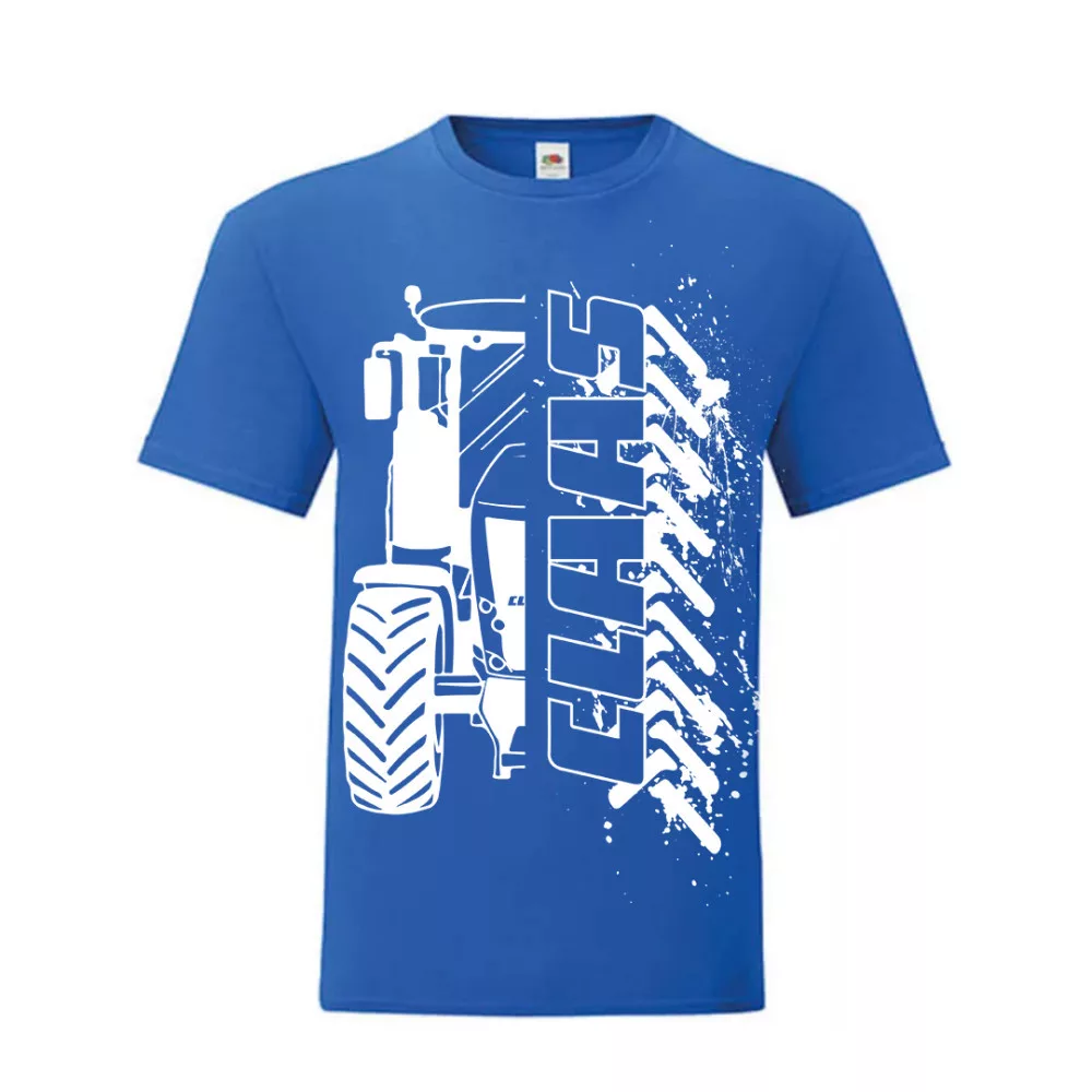 modré tričko claas obrysového dizajnu s bielym vzorom