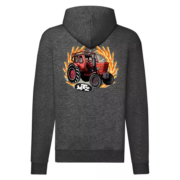 mtz 50 tmavosivý sveter s kapucou na zips
