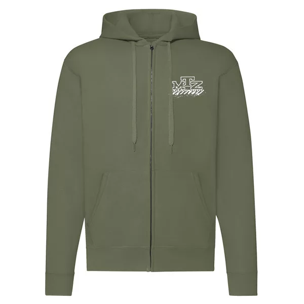 mtz50 sveter so zeleným obrysom na zips s bielym vzorom