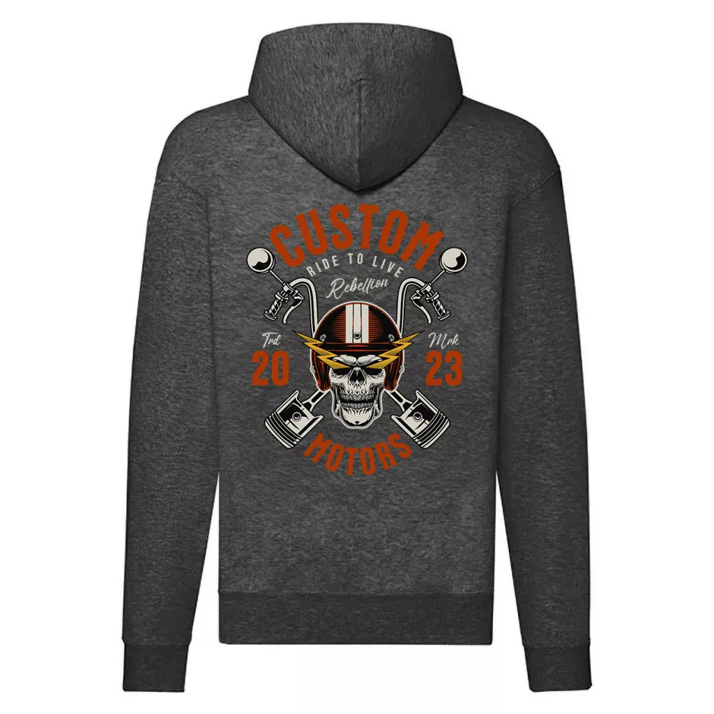 mystical journey motorcycle mikina na zips, sivá