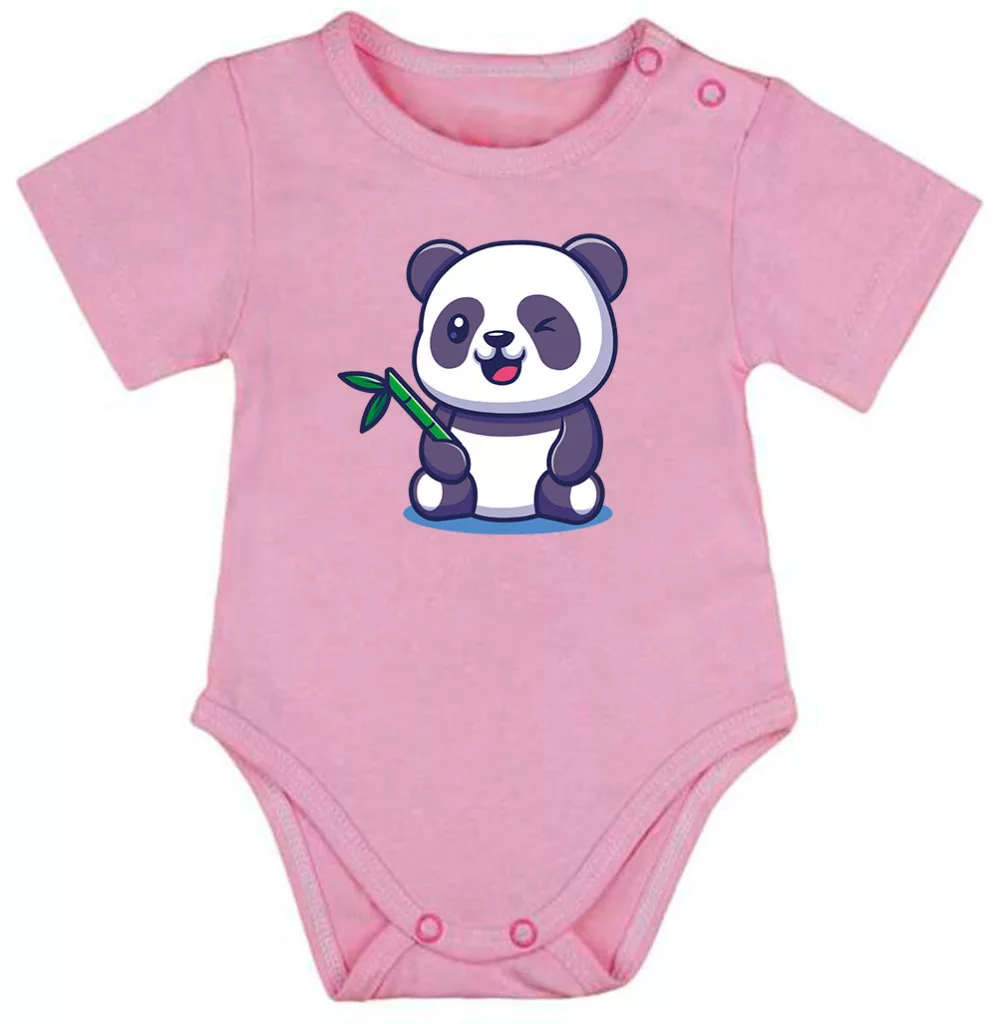 panda krátky rukáv body pre bábätká ružová