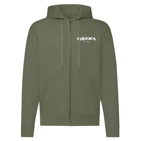 pulóver na zips dutra so zeleným obrysom biely vzor