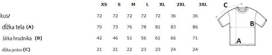 Údaje sú v centimetroch. Hranica chyby tabuľky veľkostí je +/- 2 cm.