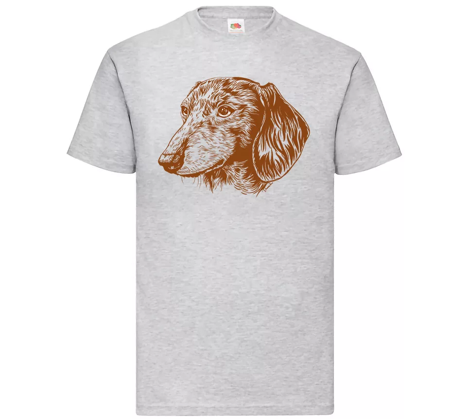 sivé tričko s hnedým jazvečíkom