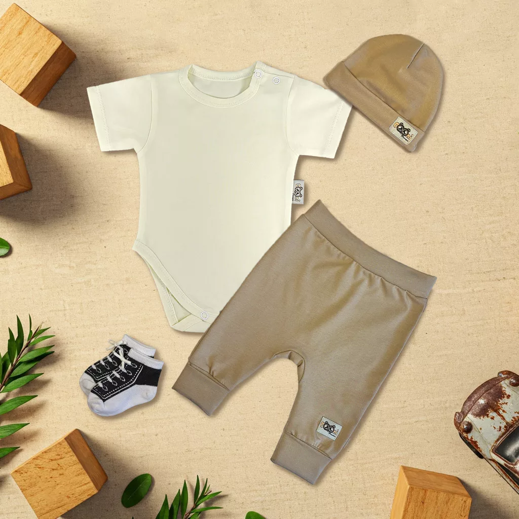 špinavobiela/kávová klasická exkluzívna súprava detského oblečenia