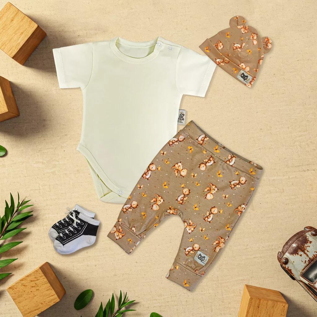 súprava exkluzívneho detského oblečenia sivobiela farba/hnedý drak