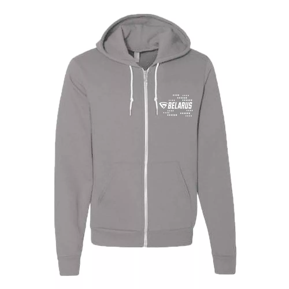 svetlo sivá sveter s kapúcou na zips nový kontúrovaný belorusko biely vzor
