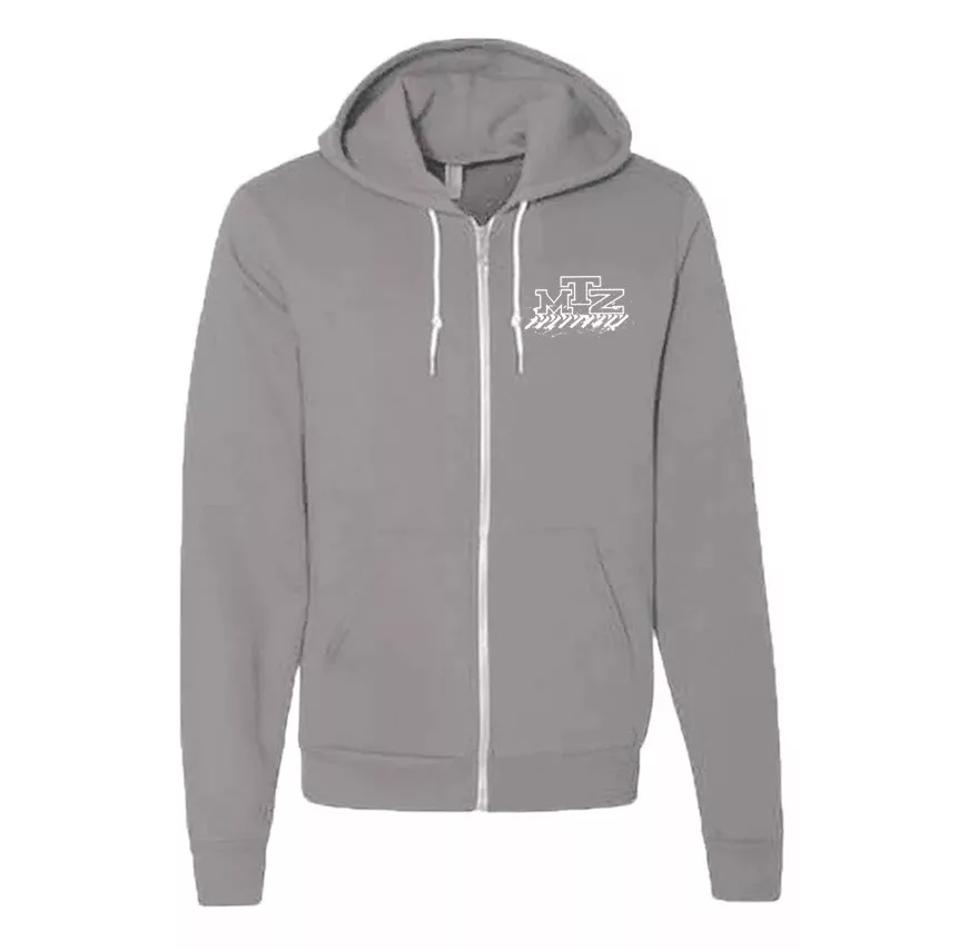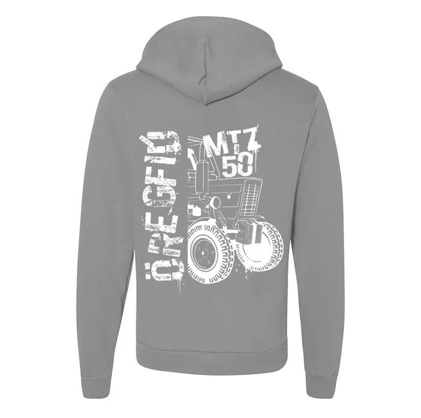 svetlo sivá svetre s kapúcou na zips nový obrys mtz50 biely vzor