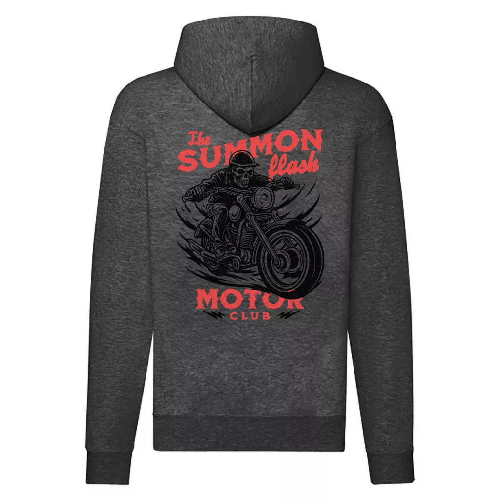 the skull garage motorcycle mikina na zips, sivá