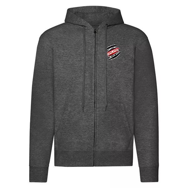tmavosivý svetre s kapúčou so zipsom s logom dutra