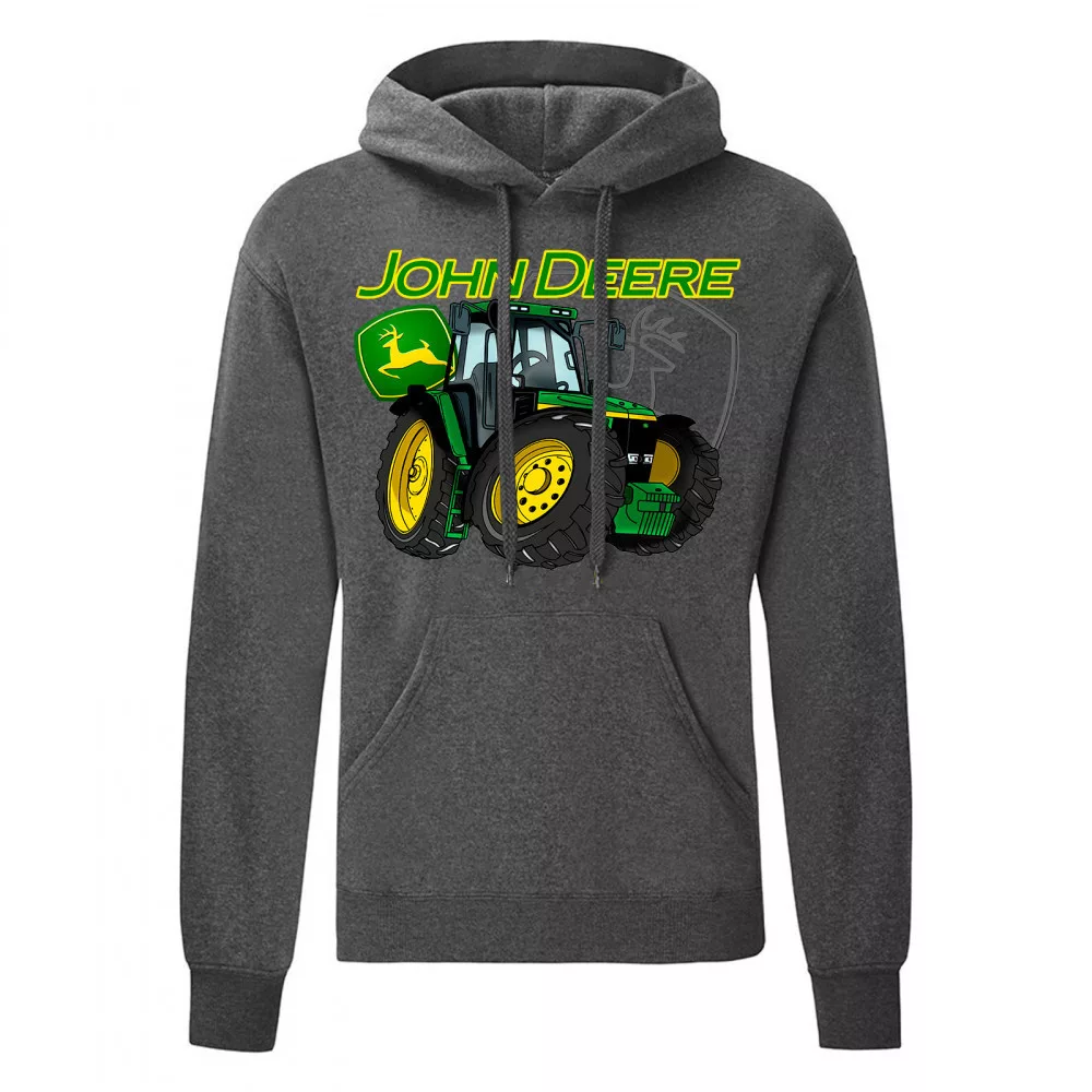 zelená mikina s kapucňou na traktor - tmavo šedá