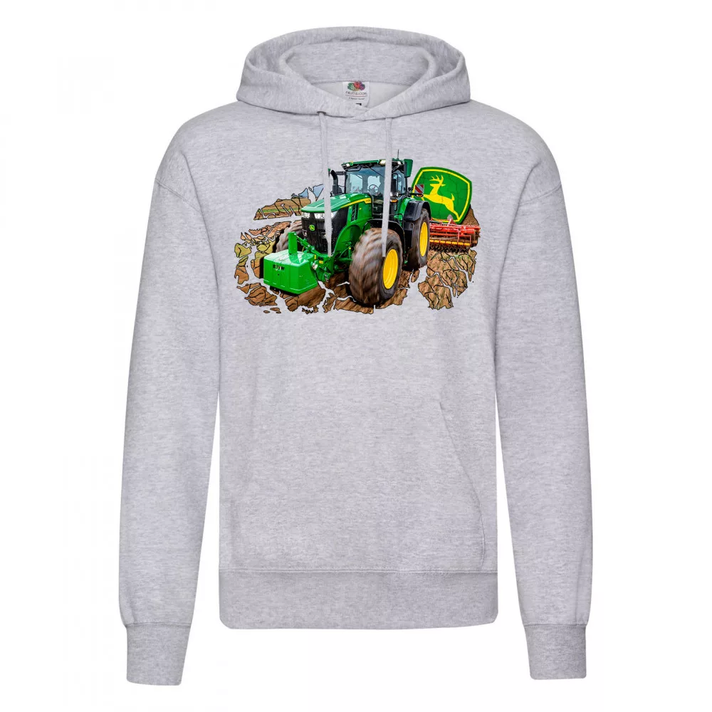 zelený traktor do práce sveter s mikinou svetlo šedý